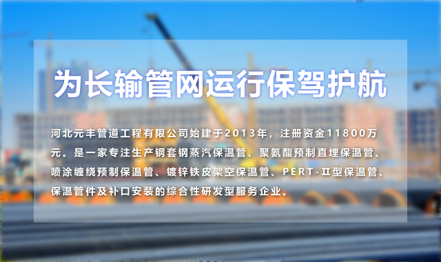 河北元豐管道工程有限公司始建于2013年,注冊資金11800萬元。是一家專注生產(chǎn)鋼套鋼蒸汽保溫管、聚氨酯預(yù)制直埋保溫管、噴涂纏繞預(yù)制保溫管、鍍鋅鐵皮架空保溫管、PERT-Ⅱ型保溫管、保溫管件及補口安裝的綜合性研發(fā)型服務(wù)企業(yè)。